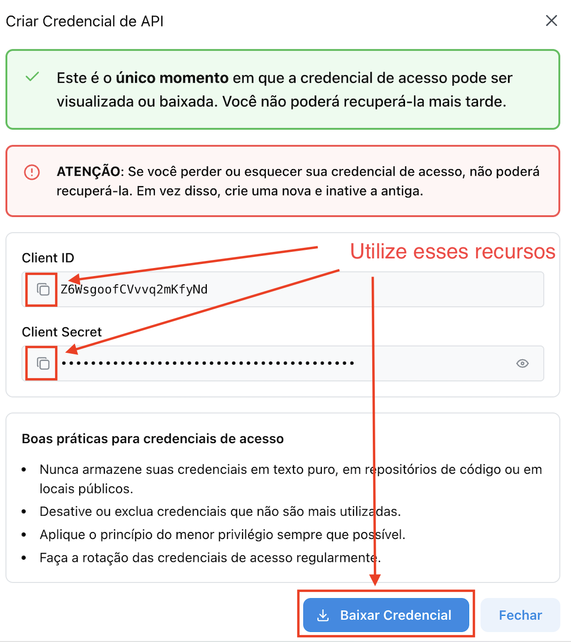 Credencial atual (Sandbox) criada em 15/01/2026: