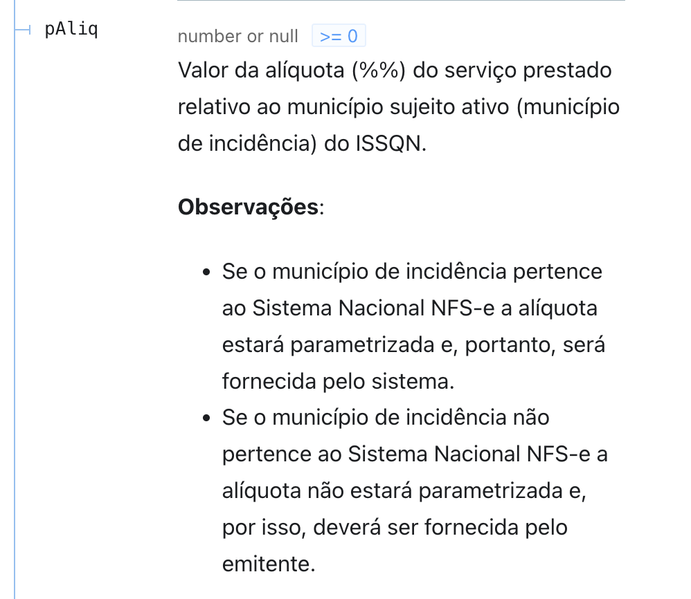 “correcao”: “The element ‘tribMun’ in namespace ‘http://www.sped.fazenda.gov.br/nfse’ has invalid child element ‘pAliq’ in namespace ‘http://www.sped.fazenda.gov.br/nfse’. List of possible elements expected: ‘tpImunidade, exigSusp, BM, tpRetISSQN’ in namespace ‘http://www.sped.fazenda.gov.br/nfse’.”