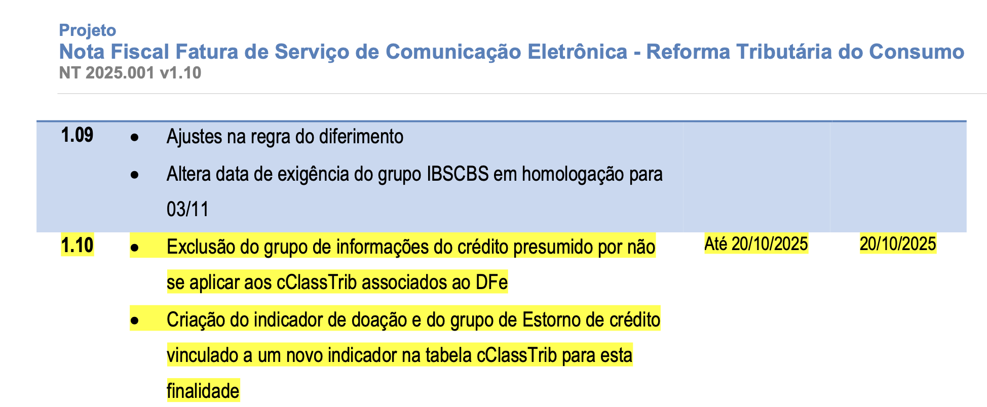 Os campos referentes ao grupo de informações do crédito presumido foram removidos pela Norma Técnica 2025.001 v1.10, publicada em 30/09/2025: