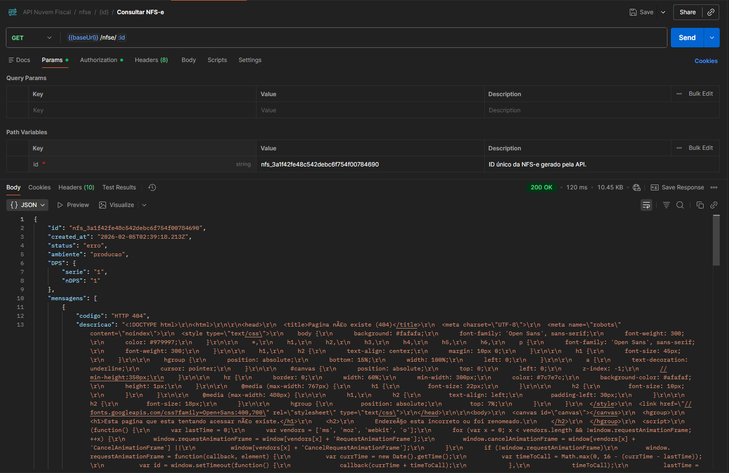 Apresenta um erro de página html no retorno, como se o endpoint de envio fosse inválido.