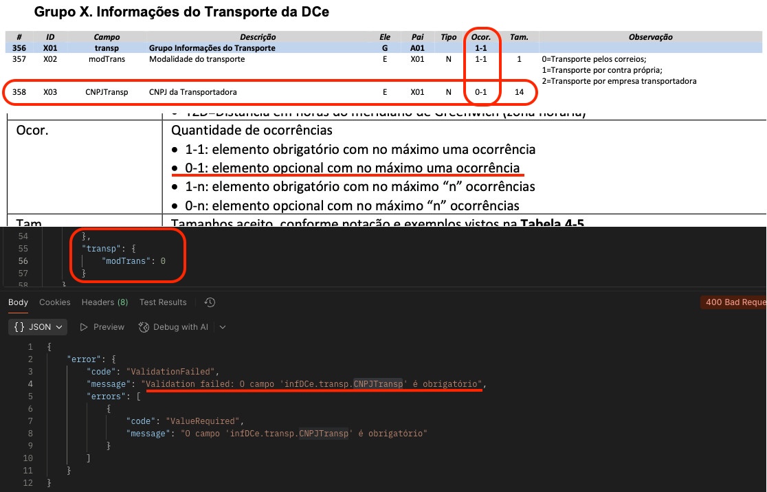 Olhando a documentação, o campo CNPJTransp é opcional, entretanto, a API está obrigado o CNPJ.