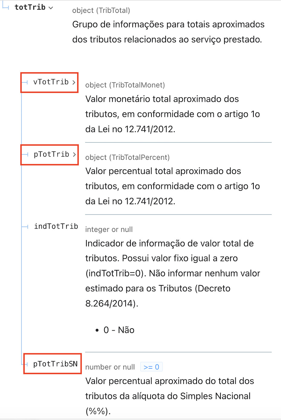 “descricao”: “Para ME/EPP somente um dos 3 poderá ser informado: grupo vTotTrib ou pTotTrib ou pTotTribSN.”