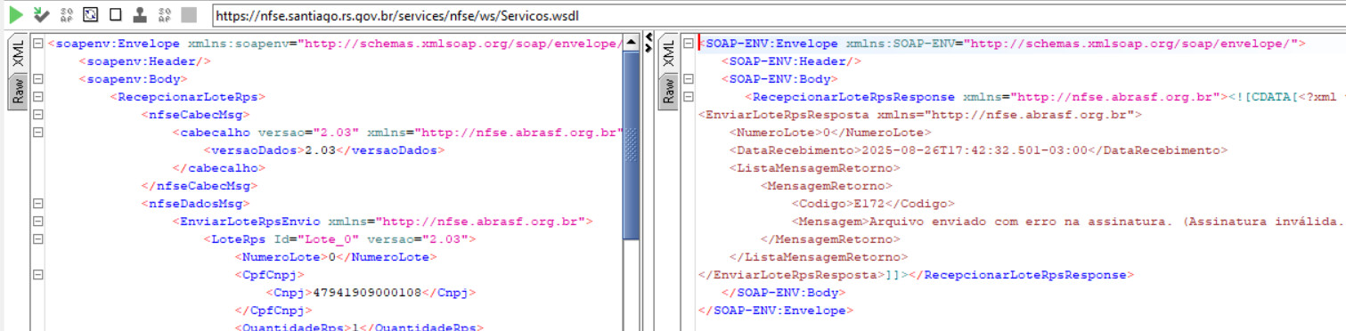 Só para ajudarrr na investigação do erro abaixo que está ocorrendo para NFS-e de santiago/rs